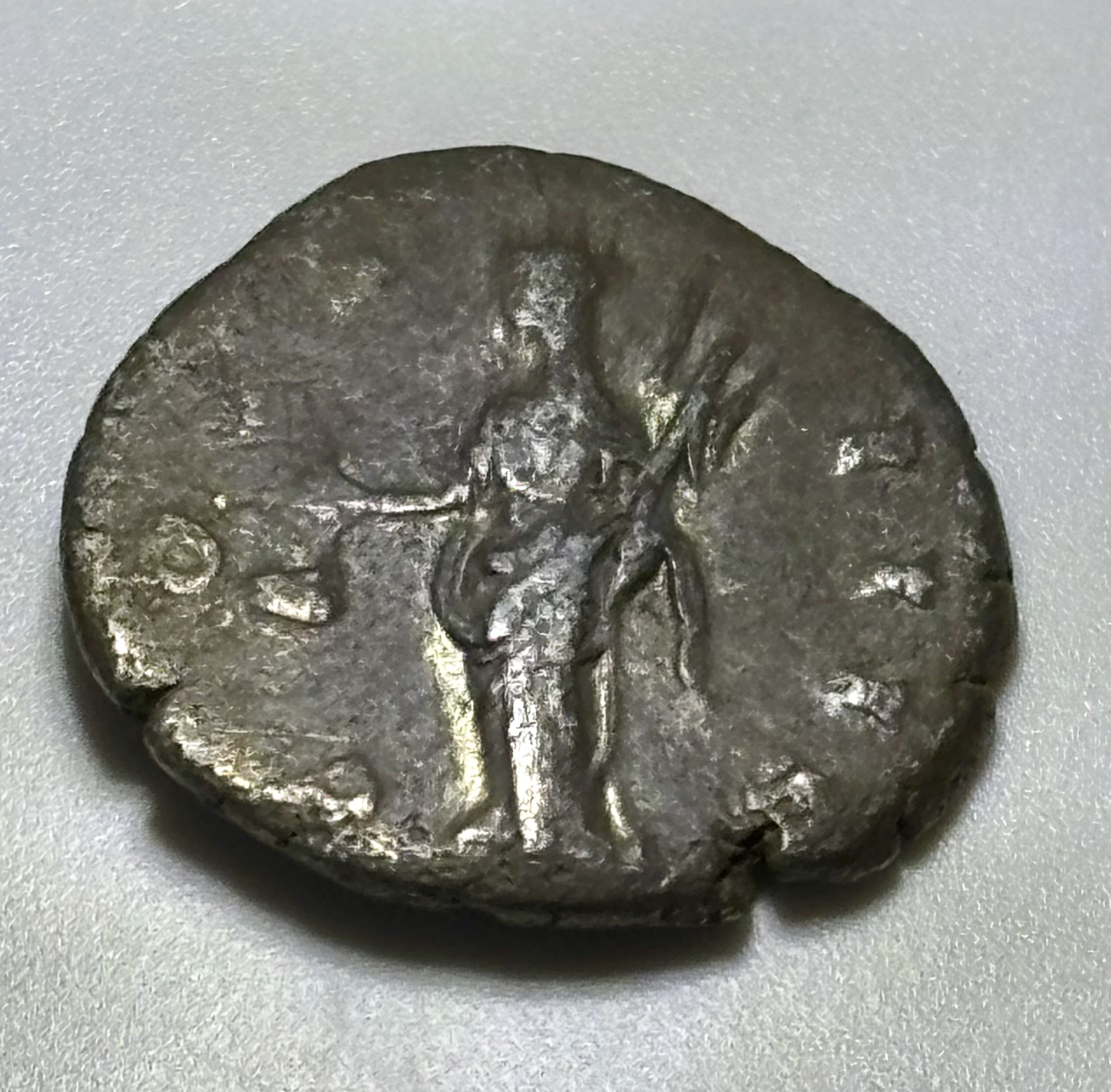 Ein fein erhaltener Denar des Antoninus Pius aus der stabilen Hochphase des Adoptivkaiser‑Zeitalters. Das Porträt zeigt den Kaiser in klassischer Antoninen‑Darstellung, während die Rückseite ein typisches Tugendmotiv trägt.