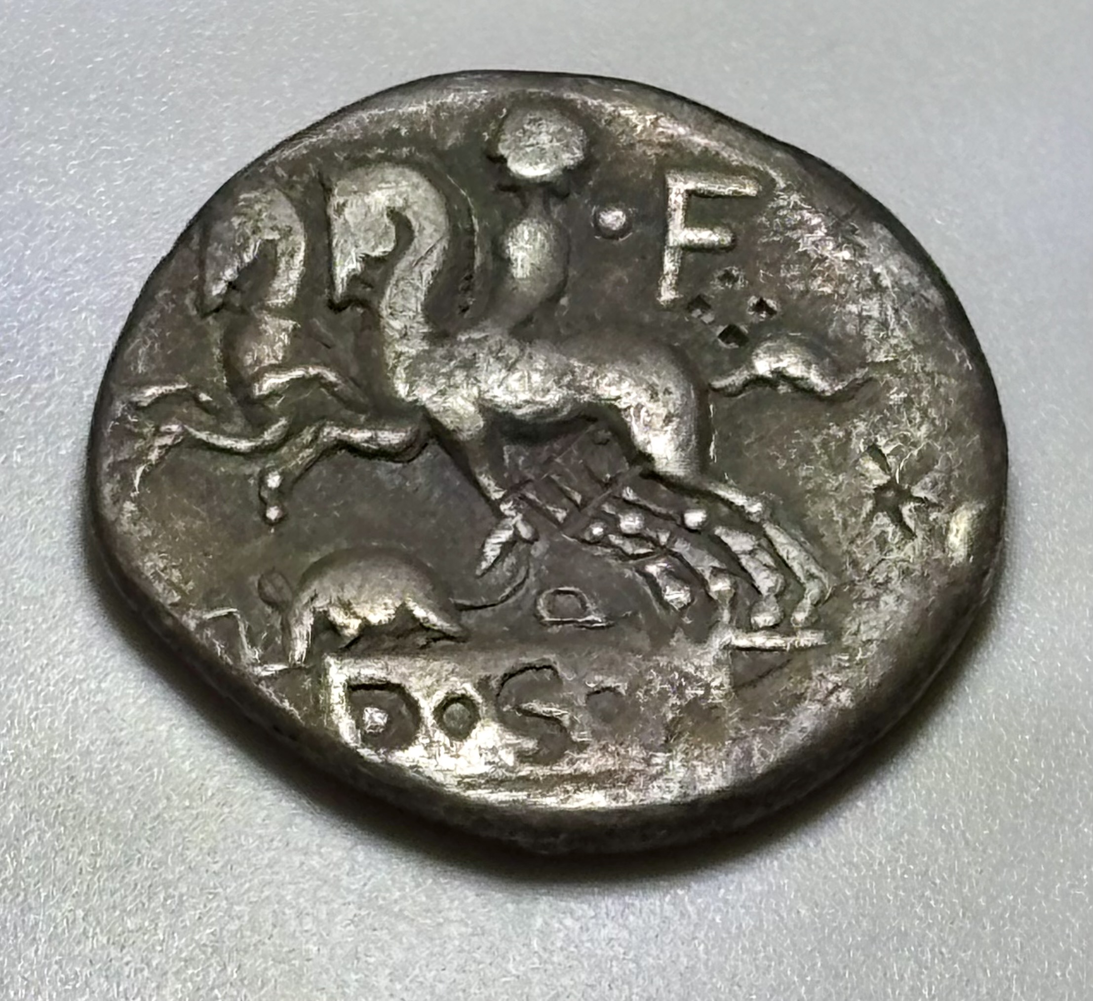 Ein republikanischer Denar mit dem Kopf des Hercules auf der Vorderseite und einer seltenen Darstellung einer Ratte auf der Rückseite. Diese symbolreiche Prägung gehört zu den charakteristischen Münzen der späten römischen Republik.