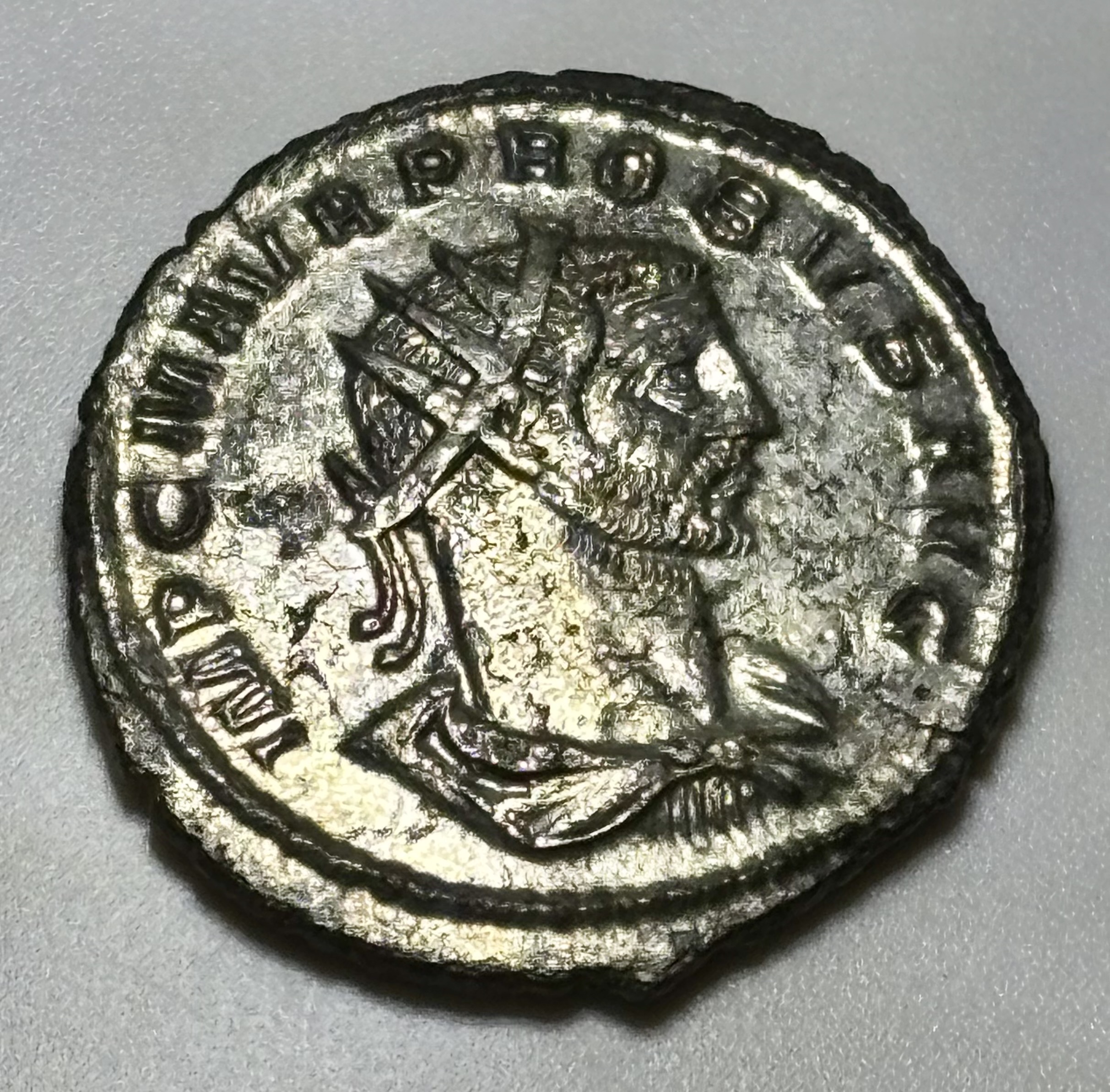 Ein typischer Antoninian des Probus aus Antiochia. Die Rückseite zeigt Fides mit zwei Standarten – ein Motiv, das die Loyalität des Militärs betont, die Probus dringend benötigte.